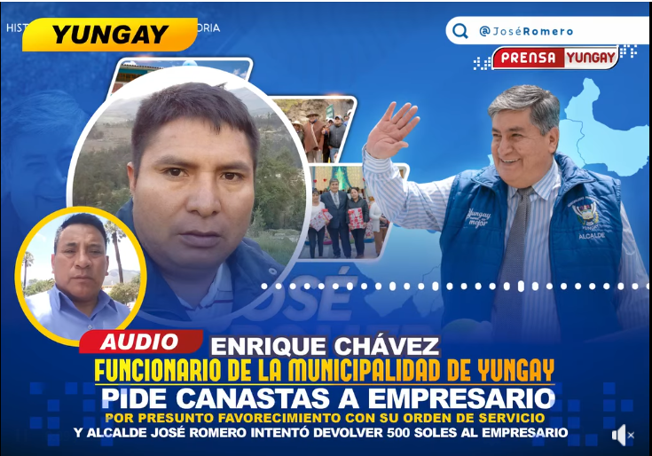 Un nuevo audio viene circulando por redes sociales, donde se escucha al empresario constructor Miguel Carey dialogar con el responsable de Logística de la Municipalidad Provincial de Yungay, Enrique Chávez, a quien presuntamente se le solicita un “apoyo” con canastas por el Día de la Madre.