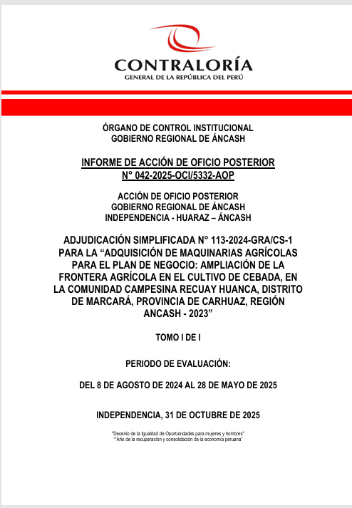 En Áncash, la compra pública parece un deporte donde siempre gana el mismo equipo. La Contraloría General de la República acaba de ponerle la lupa a un proceso del Gobierno Regional de Áncash (GRA) que huele a lo de siempre: falta de competencia, postor único y buena pro a medida.