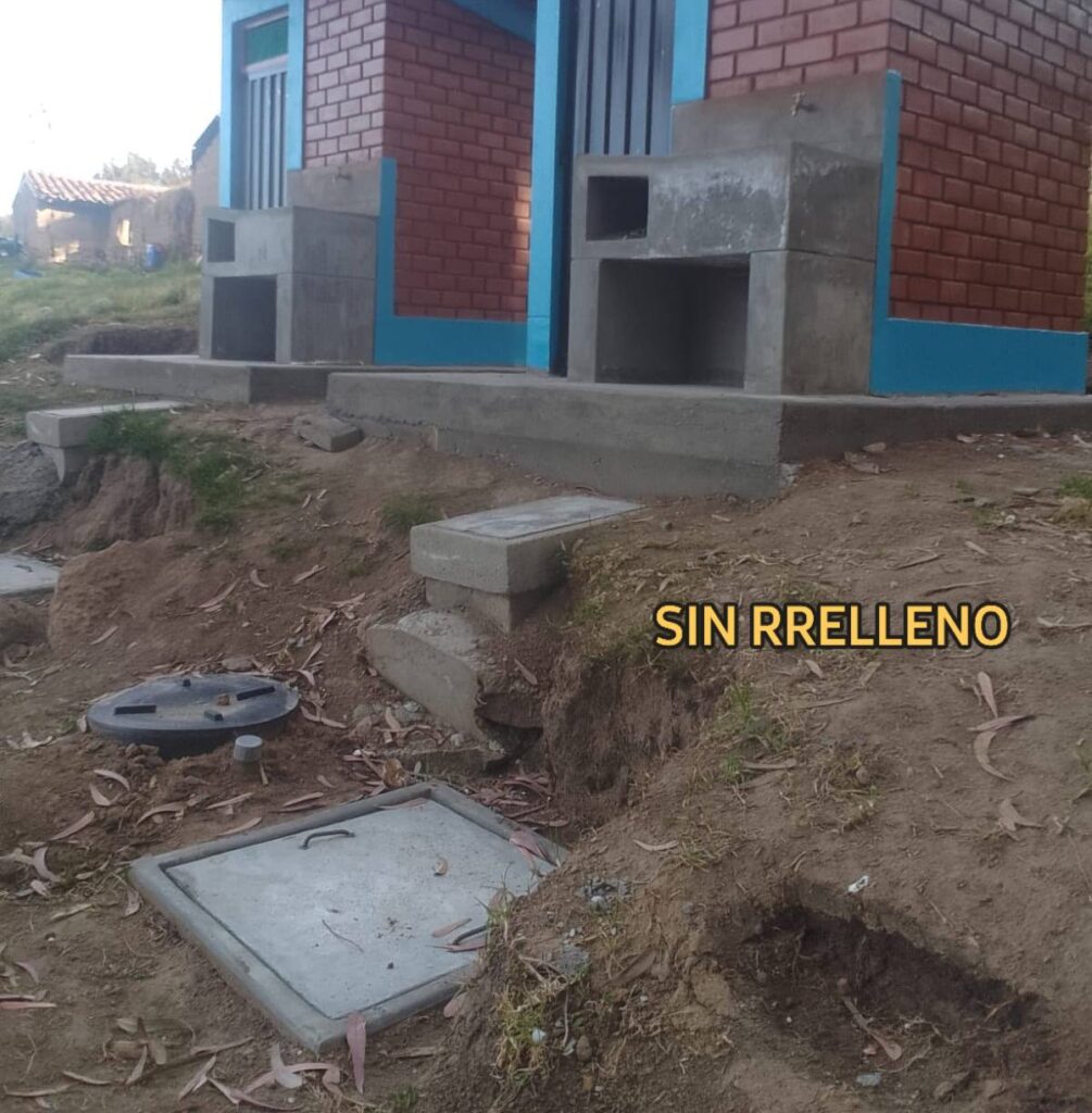Entre las irregularidades señaladas figuran: el pozo séptico sin rehabilitar, materiales de baja calidad, buzones del desagüe ubicados en un riachuelo, además de una tubería matriz que obstruye el alcantarillado principal. También se advierte que no se amplió el servicio de agua potable, pese a estar considerado en el expediente técnico.