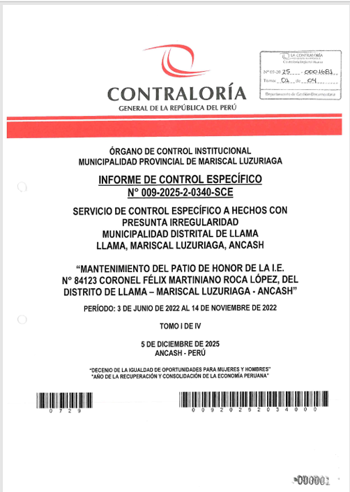 A veces, en la administración pública, las palabras sirven más para encubrir que para explicar. “Mantenimiento”, por ejemplo. Un término que, según la Contraloría General de la República (Informe N.° 009-2025-2-0340-SCE), habría sido utilizado como coartada técnica para ejecutar lo que en los hechos era una obra nueva en el distrito de Llama, provincia de Mariscal Luzuriaga.
