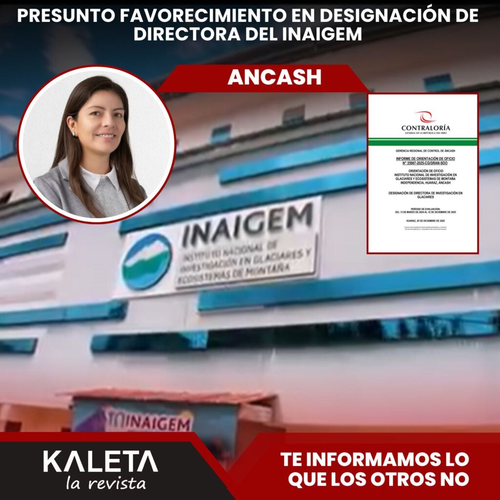La Contraloría General de la República, a través de la Gerencia Regional de Control de Áncash, emitió el Informe de Orientación de Oficio Nº 25967-2025-CG/GRAN-SOO, en el que advierte serias irregularidades en la designación de Paola Moschella Miloslavich como directora de la Dirección de Investigación en Glaciares del Instituto Nacional de Investigación en Glaciares y Ecosistemas de Montaña (INAIGEM).
