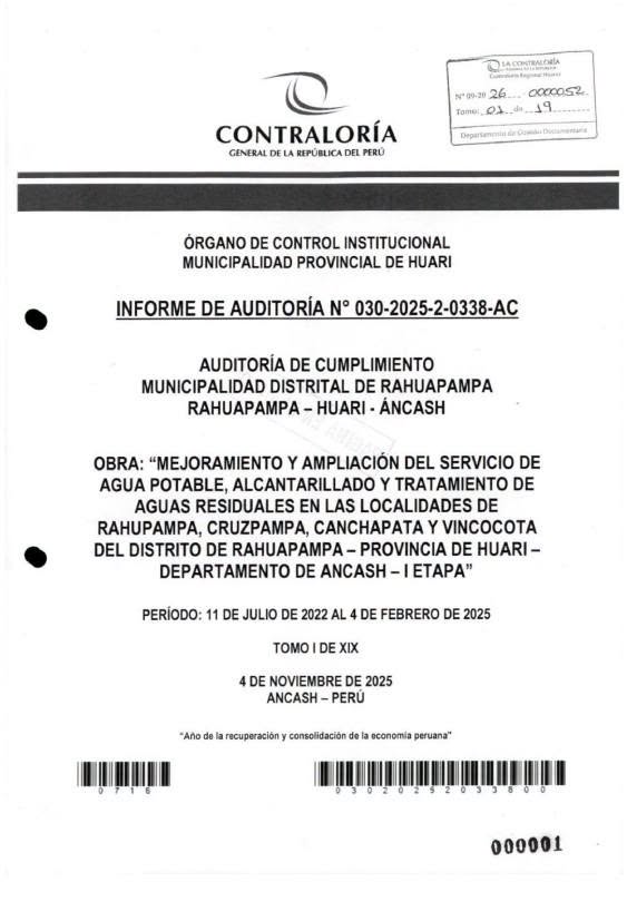 En Rahuapampa, donde el agua prometida no llegó, lo que sí fluye es el rastro de una obra mal hecha. La Contraloría General de la República ha detectado un perjuicio económico de S/ 2 195 964 en la Municipalidad Distrital, producto de una cadena de decisiones cuestionables que terminaron por convertir un proyecto de saneamiento en una infraestructura inútil.
