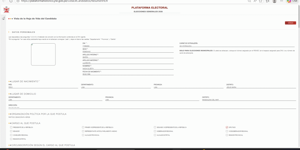 La candidata a diputada por Áncash del Partido Demócrata Verde, Nadia Elizeth Ibarra Laurente, no nació en Áncash, no vive en Áncash y no tiene trayectoria política en Áncash. Sin embargo, postula por esta región. ¿Por qué?